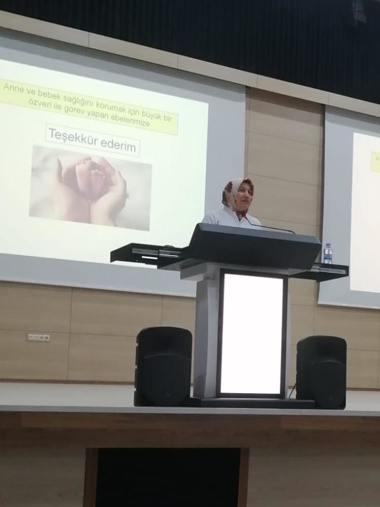 04.01.2022 tarihinde hizmet içi eğitim planı çerçevesinde Doç. Dr. Berrin ''Göktuğ Kadıoğlu moderatörlüğünde Prof. Dr. Ayşe Nur Aksoy tarafından ‘Ebelerin görev, yetki ve sorumlulukları’, Ebe Oya Gözübüyük tarafından ‘Adli ebelik’ konularının anlatıldığı konferans düzenlendi''.